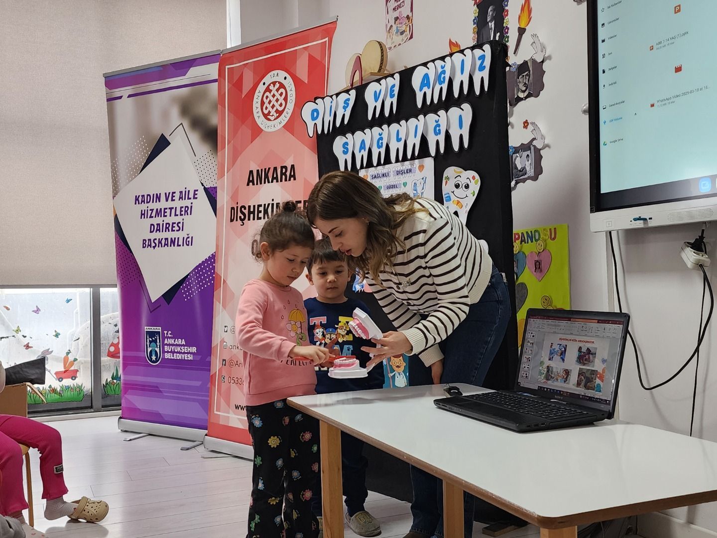 Ankara Büyükşehir Belediyesi ile birlikte yürütülen çocuk etkinlik merkezlerine yönelik ağız diş sağlığı bilgilendirme ve farkındalık eğitimlerinin dördüncüsü 20.03.2025 Dünya Ağız Sağlığı Günü’nde Altındağ Çocuk Etkinlik Merkezlerinde gerçekleştirildi.