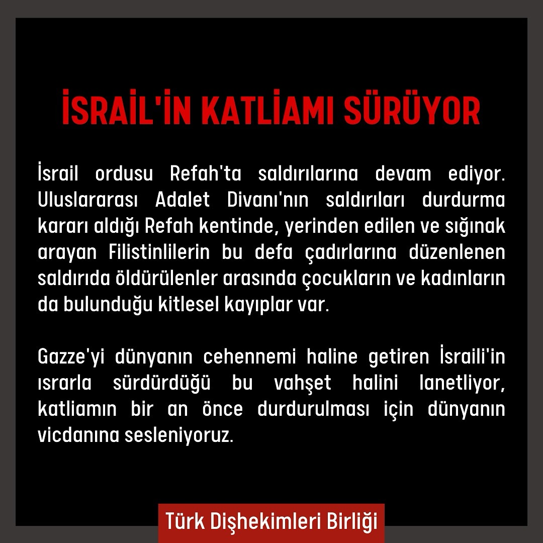 Gazze'yi dünyanın cehennemi haline getiren İsraili'in ısrarla sürdürdüğü bu vahşet halini lanetliyor, katliamın bir an önce durdurulması için dünyanın vicdanına sesleniyoruz.